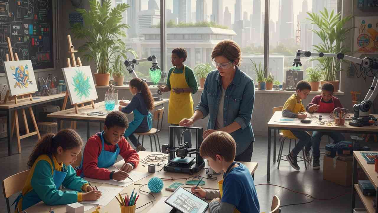 Imagine a classroom where the hum of a 3D printer blends with the vibrant strokes of watercolor, where equations transform